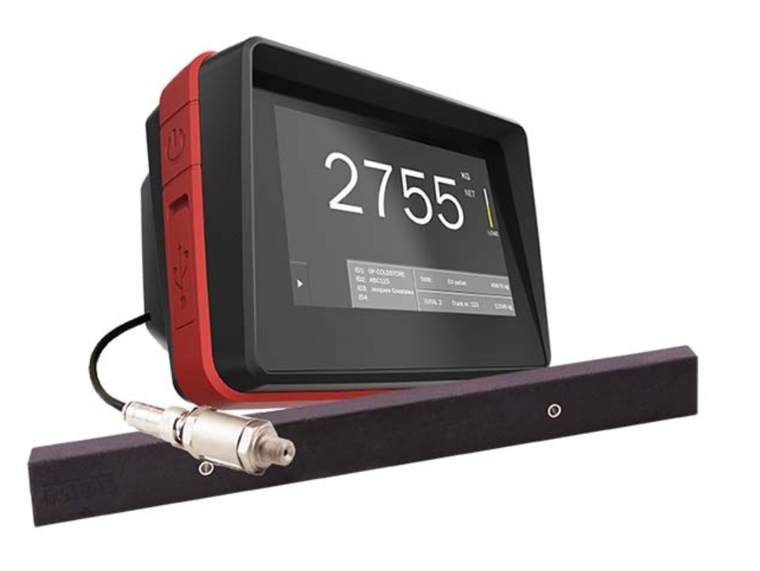 - Funcionalidad: Corrección del cero manual, corrección del auto aprendizaje cero, pesaje bruto/neto, memoria para 10 valores de tara, entrada del código para 4 ID-códigos con 10 códigos preestablecidos, 10 registros de totalización, conexión de puerto RS232 para impresora, salida USB para transferencia de datos, Bluetooth 4.0 para RAVAS WeightsApp, indicación de la sobrecarga basada en la presión hidráulica existente, mensaje de error en la pantalla incluido el registro.